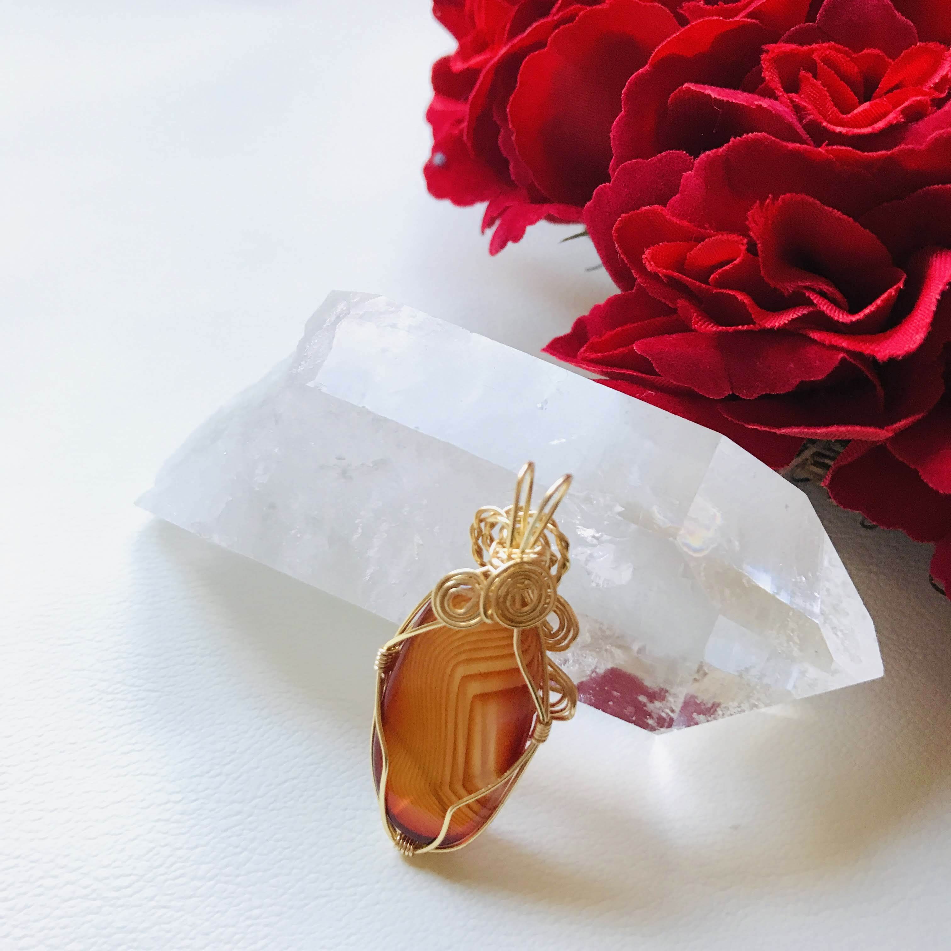 第三の目を刺激して直感力・集中力アップ、魔除け、人間関係に調和をもたらすと言われるストライプアゲート(サードオニキス)のペンダントトップです。